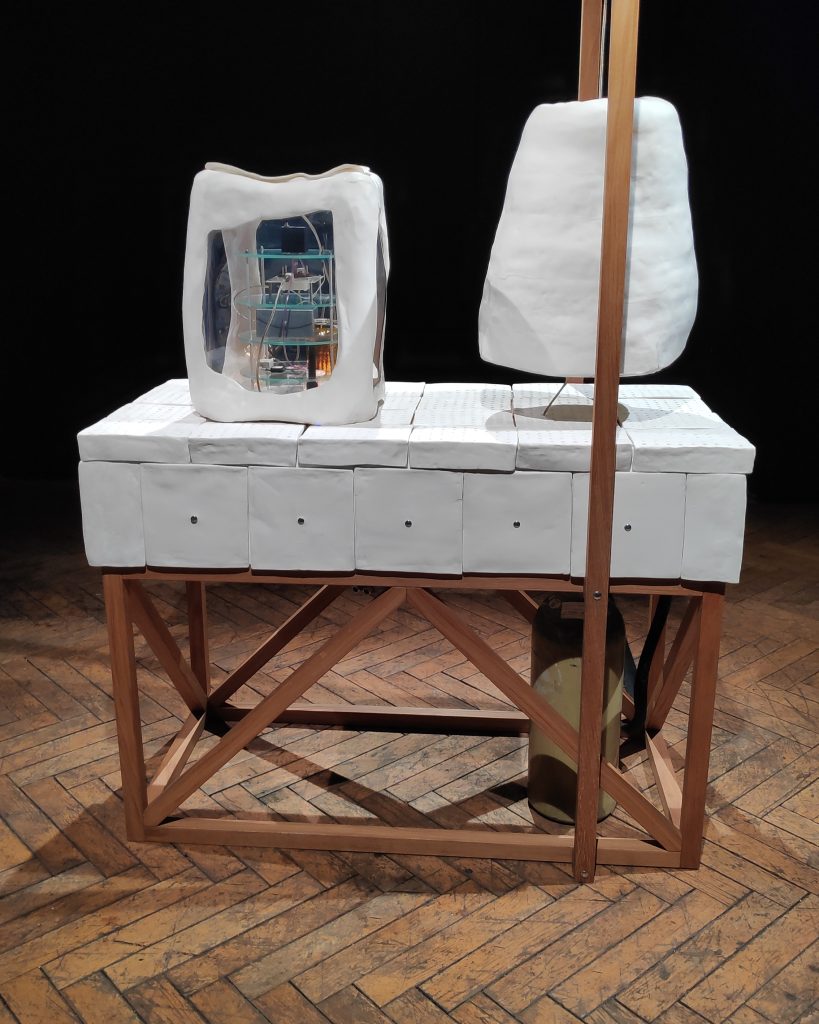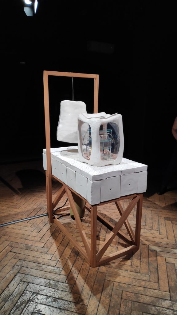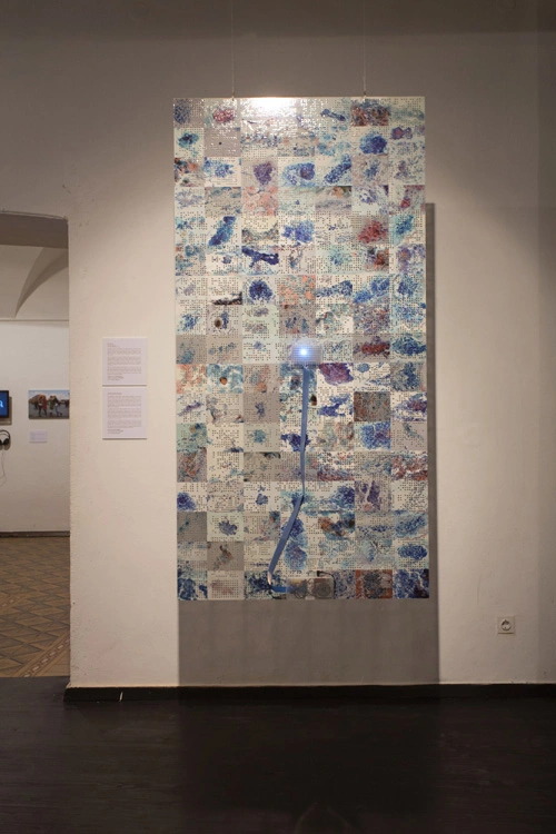Svetlobno zvočna instalacija Instalacija je vizualni prikaz podatkov, ki jih izračuna algoritem za določanje količine visokorizičnega HPV virusa v vzorcu s področja materničnega vratu. Svetloba in matrika slik omogočajo vstop skozi različna gledišča. Instalacija bo omogočala vstop gledalke/ca v prostor, kjer se razkrije, kako nedoločena in pogosto arbitrarna je verjetnost, da zboliš za rakom materničnega vratu. Algoritem naj bi reprezentiral “objektivno” določen pogled, za katerega se izkaže, da temelji na znanstvenem konsenzu. Med jasnimi negativnimi in pozitivnimi izvidi obstaja siva cona. Med pozitivnim izvidom in zbolevnostjo, pa polje med življenjem in smrtjo, prostor kvantne verjetnosti, ki ga medicina z orodji diagnostike in statistike ne more opisati. Stanje spominja na Schroedingerjevo mačko, kjer je mačka v obeh stanjih hkrati (živem in mrtvem), dokler s pogledom ne določimo izida. Zato bo z vstopom gledalca/ke omogočena sprepletenost in soobstajanje in hkrati spreminjanje preddoločenega izvida, kar bo reprezentirano s spremembo jakosti svetlobe in zvoka. Odločitev je posledica pogleda na svet, ki določa pravilnost samo enega diagnostičnega pogleda. Test lovilec hibridov II omogoča pogled na rezultate testa skozi algoritem. Vprašanje, ki ga zastavlja avtorica z instalacijo je povezano z biopolitiko (kdo je notri in kdo je zunaj) in kontekstom (okoliščine – politične, osebne, sistemske), tudi v povezavi s sivo cono testa (mejno področje med 0,8 RLU – relativna svetlobna enota, in 2 RLU, ki je vmes med negativnim in pozitivnim izidom) in oddaljenostjo od pogoja za zbolevnost, ki je numerično določena. Okužba z virusom HPV je pogoj za obolevnost za rakom materničnega vratu. Višja kot je količina HPV hibridov (kompleks virus HPV – sonda), večja je svetilnost in višji je zvok. Negativni izvid ima nizko svetilnost in nižji zvok oziroma frekvenco zdravja. Ti signali so vzporejeni z vizualno kuliso, sestavljeno iz slik različnih rakavih in predrakavih stopenj (od negativnih do karcinomskih). Rezultati, ki so negativni so predstavljeni kot prevrtana luknja v PVC ploščo, pozitini pa niso prevratni. Prikaz deluje kot nekakšno “sito” za celice, kjer senca ki jo meče plošča deluje kot njen negativ…, čeprav ima nekako pozitiven pomen, saj so vzorci spuščeni v življenje, ti ki so ostali na cedilu pa omogočajo prepoznavo in nadaljne zdravljenje. Plošča in njena senca, ki jo meče sestavljata celoto življenja in smrti, prav tako dodatna plošča na tej vizualni kulisi, ki ima združeni komponenti svetlobe (LED dioda ob pozitinem izidu zasveti in ima drugačno frekveno zvoka) kot negativen izid. Materiali: Arduino, elektronsko vezje, LED diode, rezultati HPV Hybride Capture II testa pridobljeni z rednim testiranjem vzorcev – slike negativnih in različnih predrakavih in rakavih sprememb.