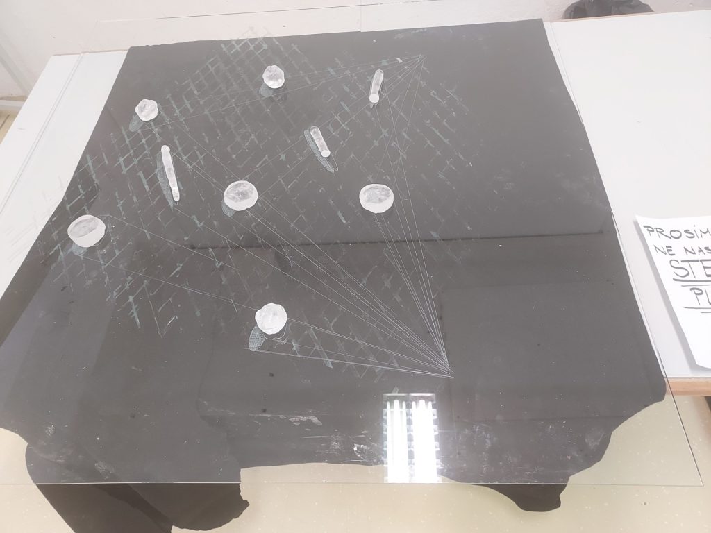Spodaj na stekelni plošči bom uporabila tehniko jedkanja, linearne črte.